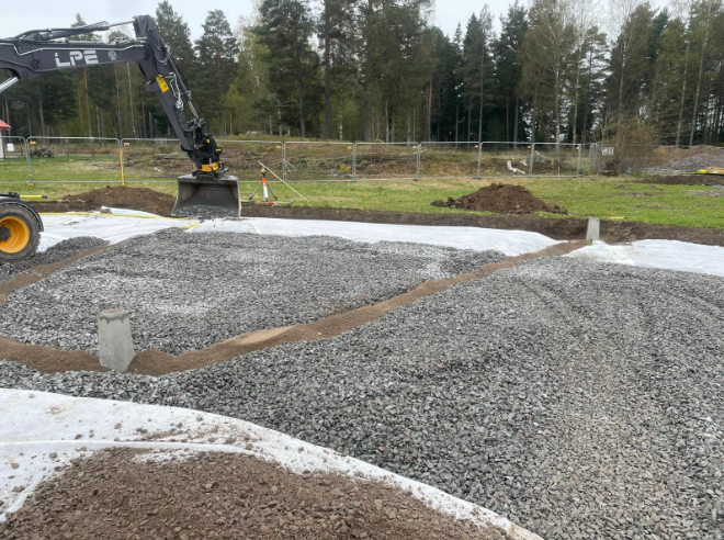 På uppdrag av JSB Construction bygger vi en ny skola och ett Aktivitetscenter åt Enköpings kommun. Uppdraget består av Schakt, VA, Pålning, Grundläggning och Finplaneringsarbeten.