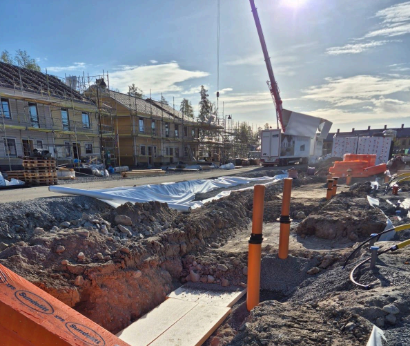 På uppdrag av Besqab utför vi Mark, VA, Grundläggnings och Finplaneringsarbeten till 25 nya radhus i Rickomberga, Uppsala.